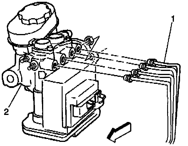 3. Disconnect the forward brake pipe connections) (1) at the master cylinder.
