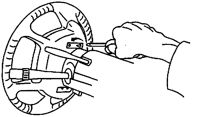 2. Using flat-bladed tool, on the back side of the inflatable restraint steering wheel module, to release the four leaf springs. Gently pull on the module while the leaf springs are released.