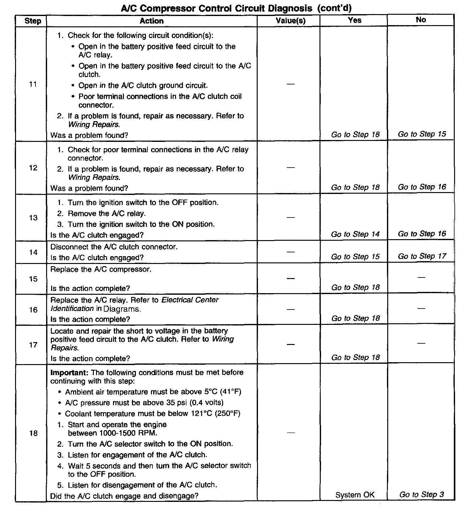Any of the conditions described above will inhibit A/C compressor relay operation.