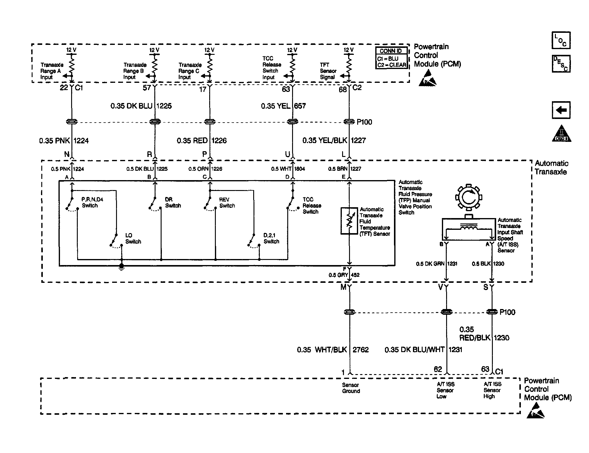 Automatic Transmission Control Schematics (TFP Valve Position Switch, TFT Sensor, and A/T ISS Sensor: 4T45-E 3.4L)