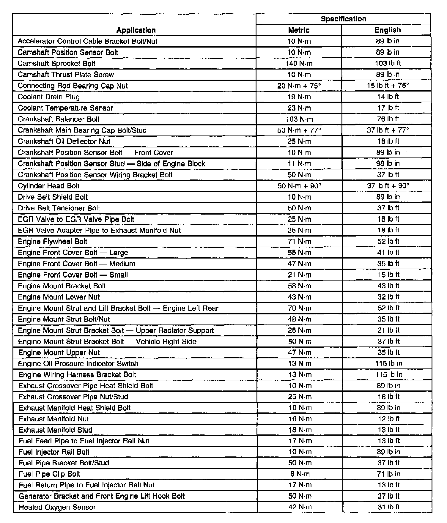 Engine Fastener Tightening Specifications