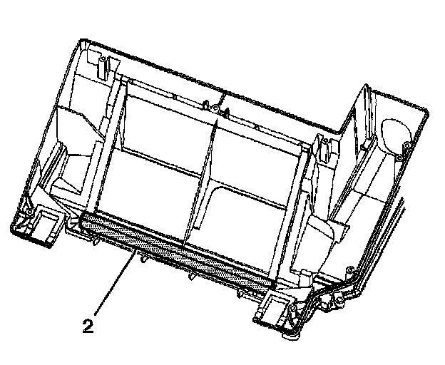 2. Install the heater core upper seal (2) from the HVAC lower case.
