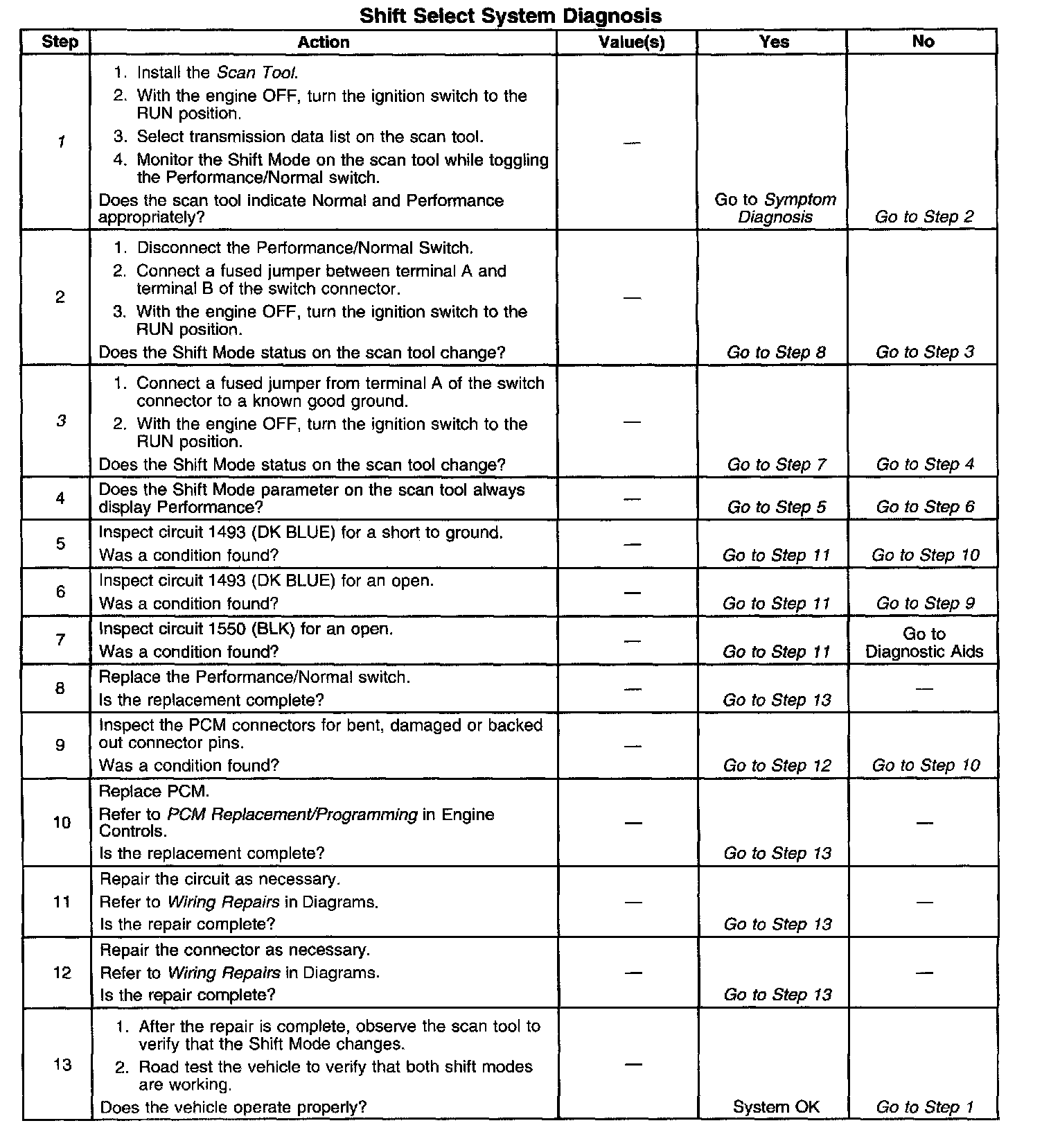 Shift Select System Diagnosis
