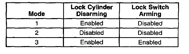 5. Press the transmitter alarm button. The seatbelt indicator flashes and the chime sounds 1-4 time These actions indicate which mode the vehicle is in.