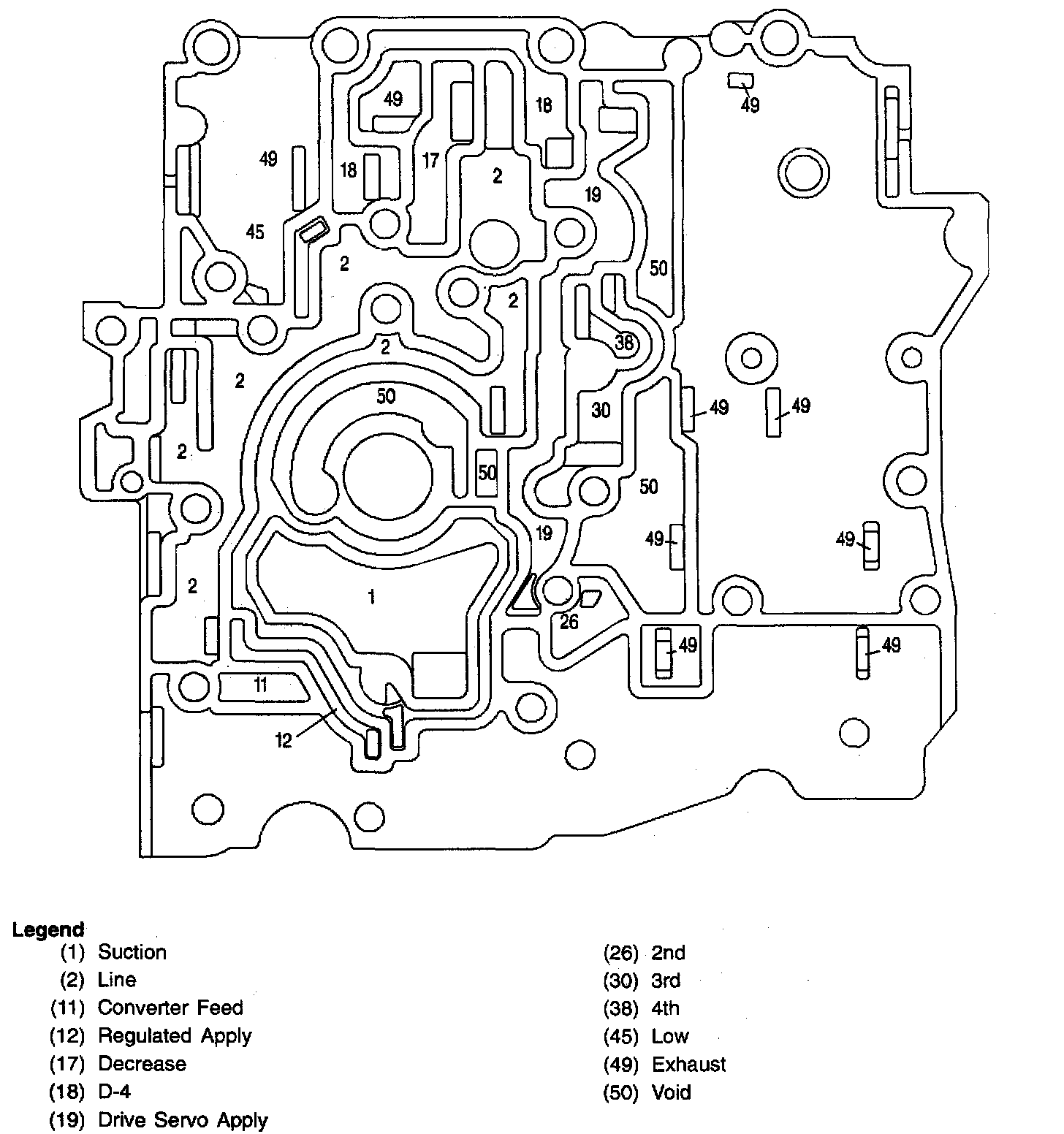 CONTROL VALVE BODY FLUID PASSAGES (OIL PUMP SIDE)