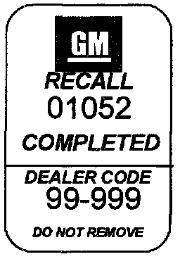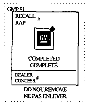 Put the Recall Identification Label on a clean and dry surface of the radiator core support in an area that will be visible to people servicing the vehicle. Additional Recall Identification Labels for Canadian dealers can be obtained from DGN by calling 1-800-668-5539 (Monday-Friday, 8:00 a.m. to 5:00 p.m. EST). Ask for Item Number GMP 91 when ordering.