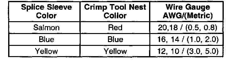 5. Select the proper splice sleeve (2) and the required crimp nest tool, refer to the Crimp and Seal Splice Table.