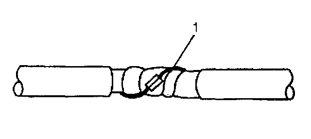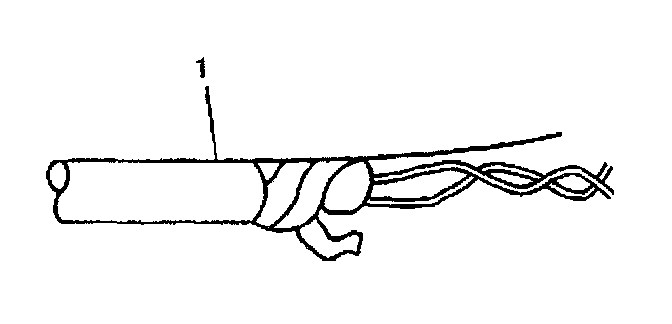 1. Remove the outer jacket (1). Use care not to cut into the drain wire of the mylar tape.