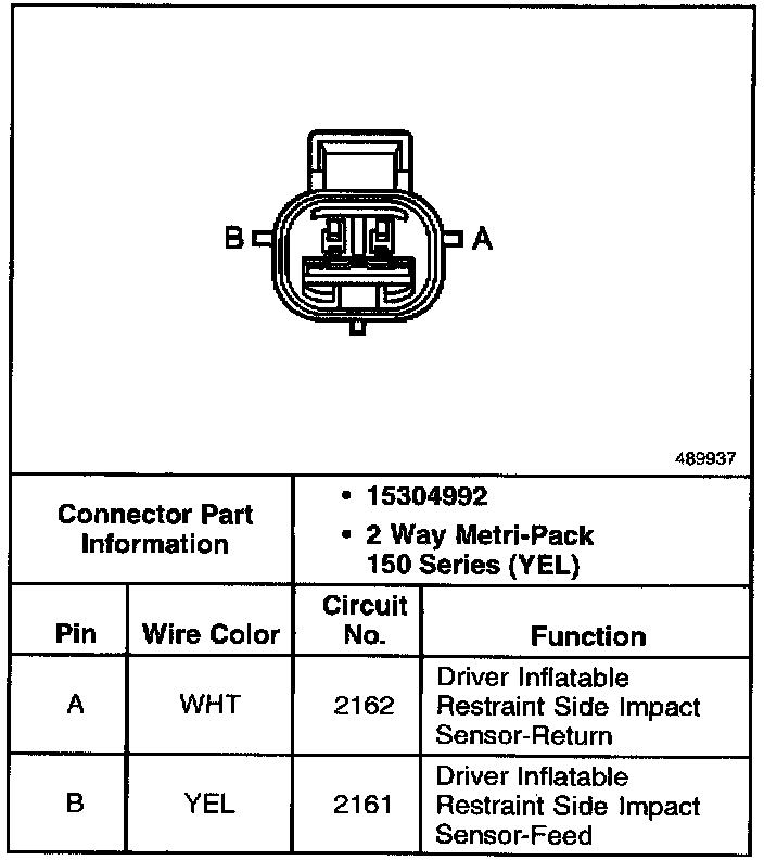 Driver Inflatable Restraint Side Impact Sensor (SIS):