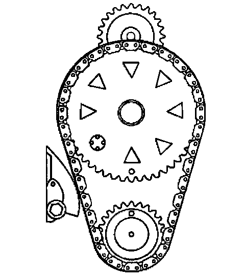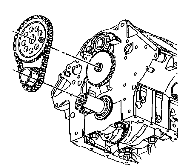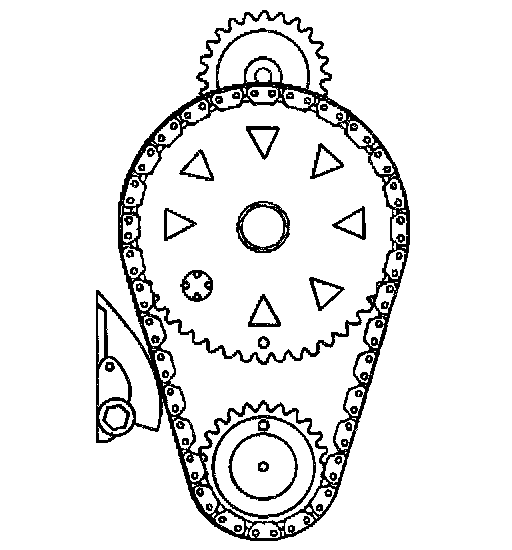 3. Assemble the timing chain on the sprockets. Ensure that the timing marks are in the closest together position.