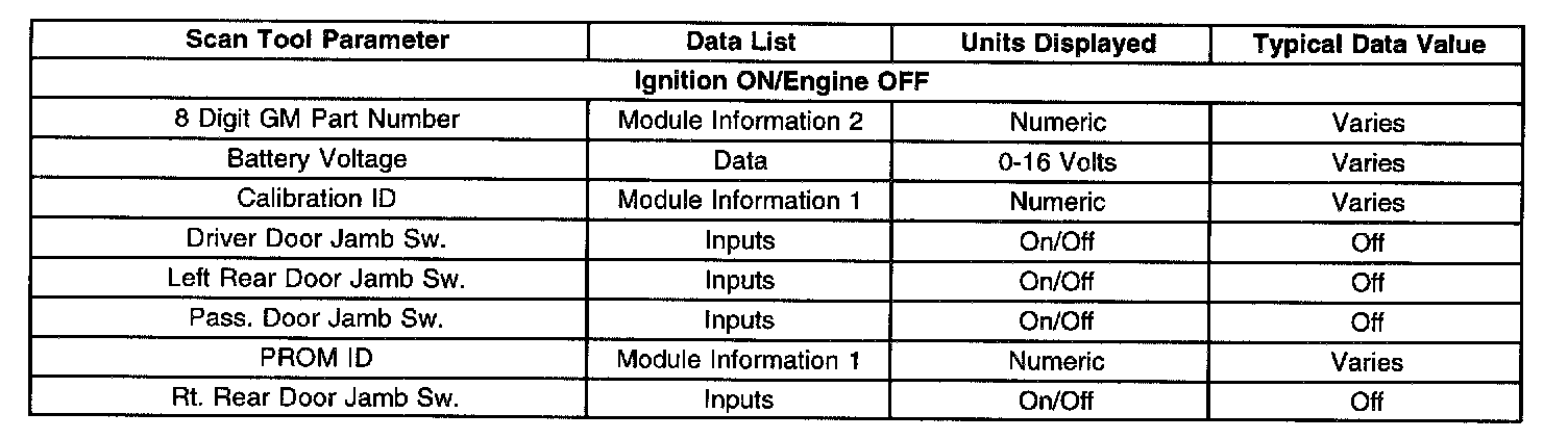 Scan Tool Data List - Drivers Door Module (DDM)