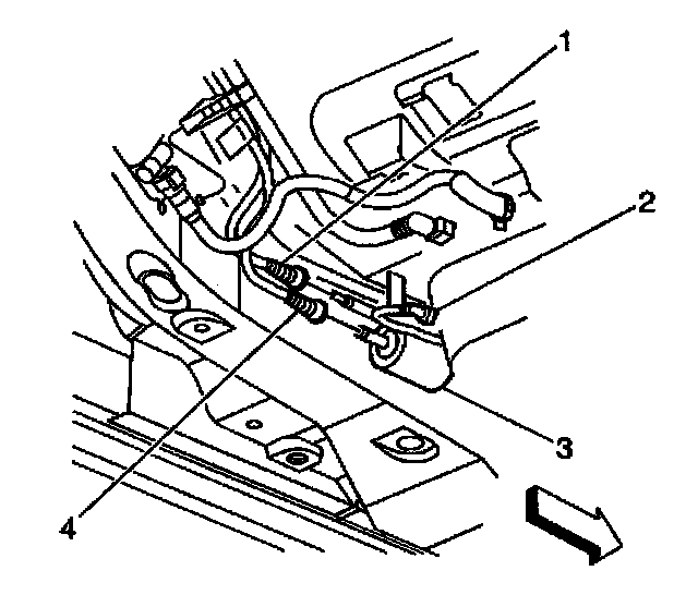 3. Remove the quick-connect fitting at the fuel feed pipe (4).