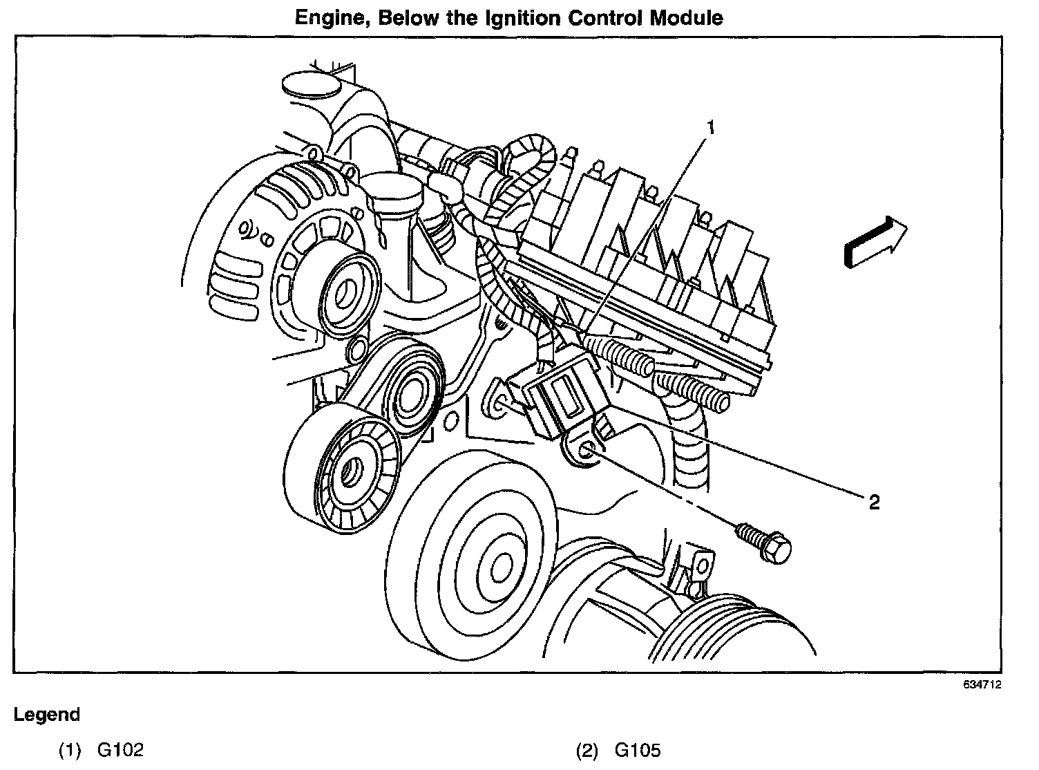 Front of the engine below the ignition control module.