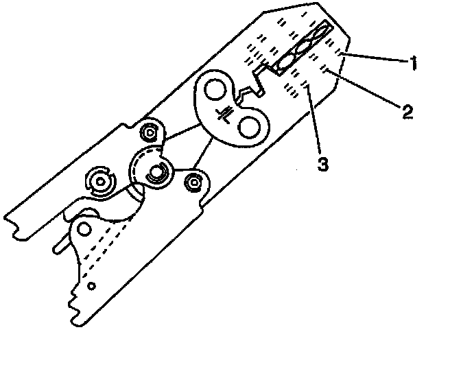 6. Place the splice sleeve in the nest. Ensure that the crimp falls midway between the end of the barrel and the stop. The sleeve has a stop (3) in the middle of the barrel (2) in order to prevent the wire (1) from going further. Close the hand crimper handles slightly in order to firmly hold the splice sleeve in the proper nest.