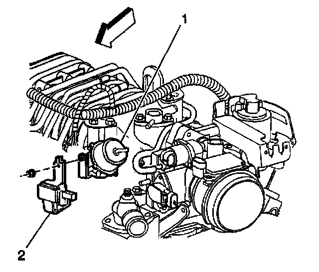2. Disconnect the boost source and the signal hoses from the boost control solenoid (2).
