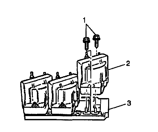 3. Remove the screws (1) securing the coil assemblies to the ignition control module (ICM).