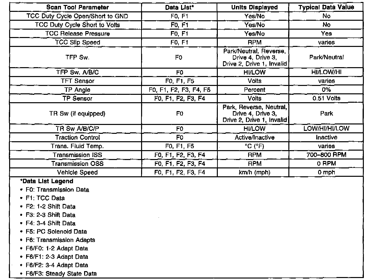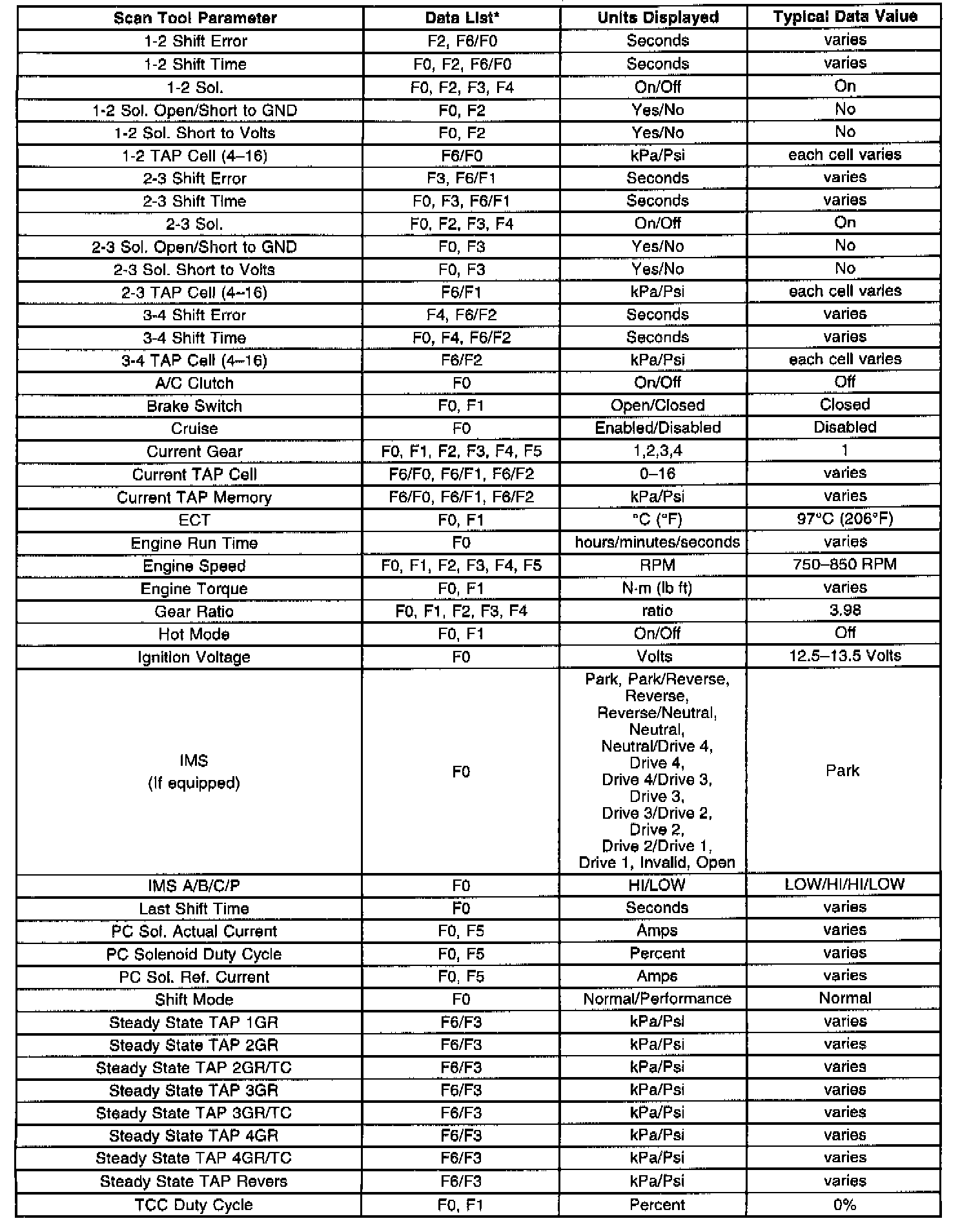 Only the parameters listed below are used in these diagnostic procedures for diagnosing. If a scan tool displays other parameters, the values are not recommended by General Motors for use in diagnosis.