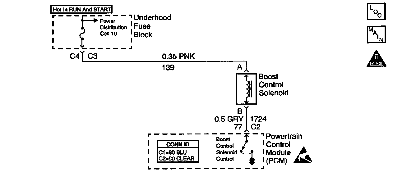4. Ensures that the PCM can control the ODM output for the boost control solenoid, and that the control circuit of the boost control solenoid is not open.