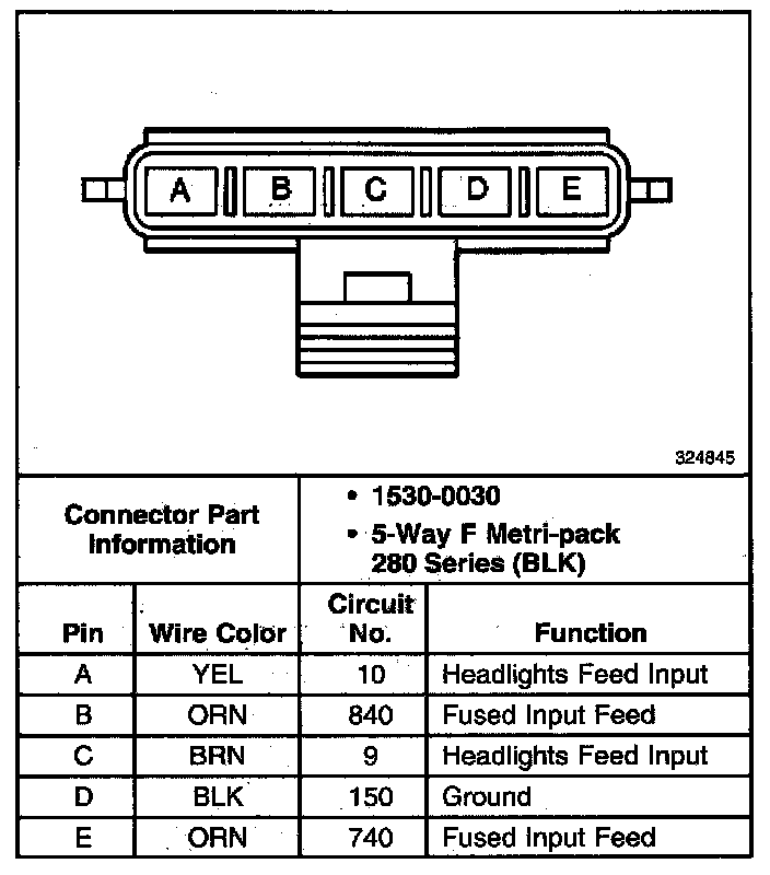 Headlamp Opening Door Actuator Control Module Connector C1