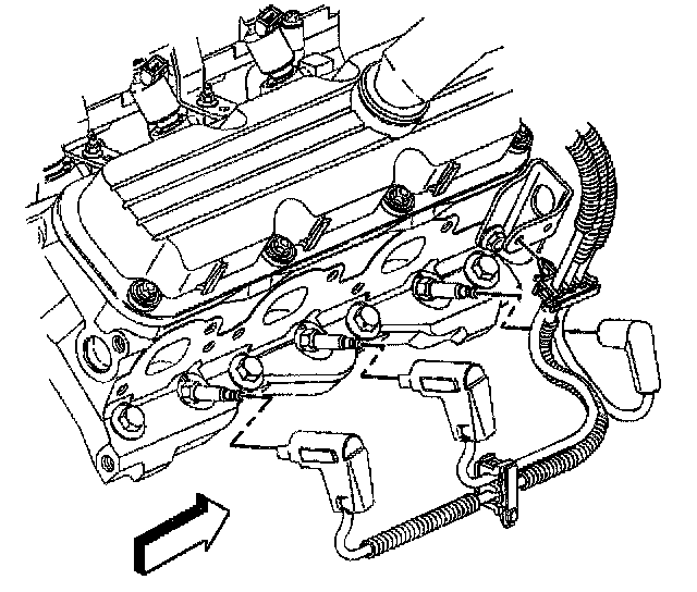 REMOVAL PROCEDURE1. Disconnect the odd numbered plug wires (1, 3, 5) from the ignition coils.