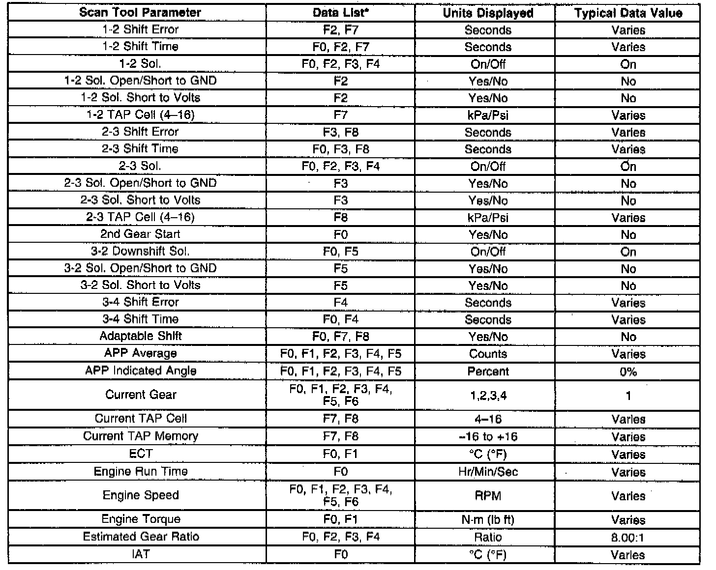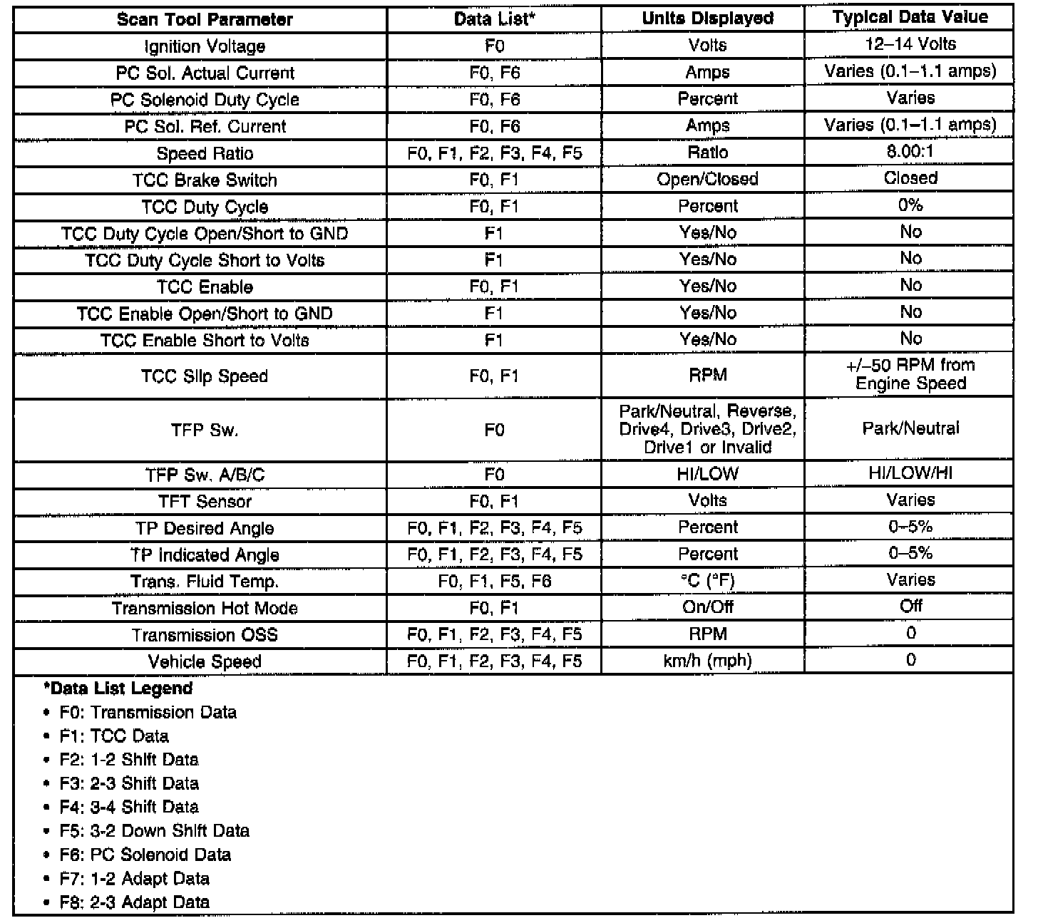 Only the parameters listed below are used in this section for diagnosing. If a scan tool displays other parameters, the values are not recommended by General Motors for use in diagnosis.