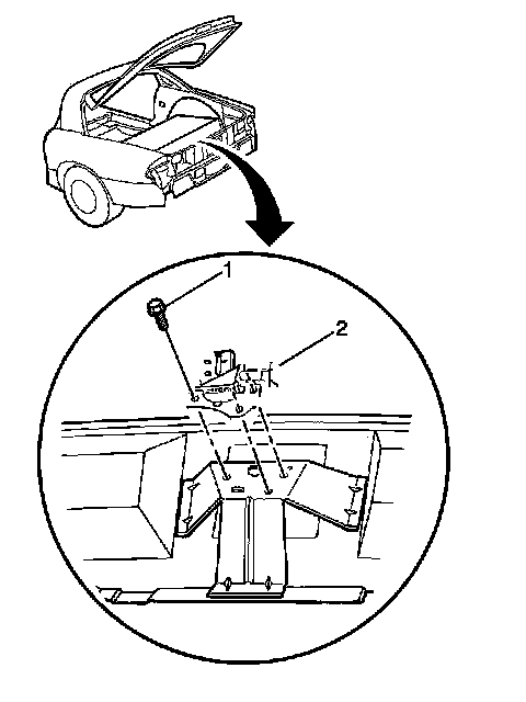 4. Disconnect the rear compartment lid lock release actuator secondary lock retainer and electrical connector.