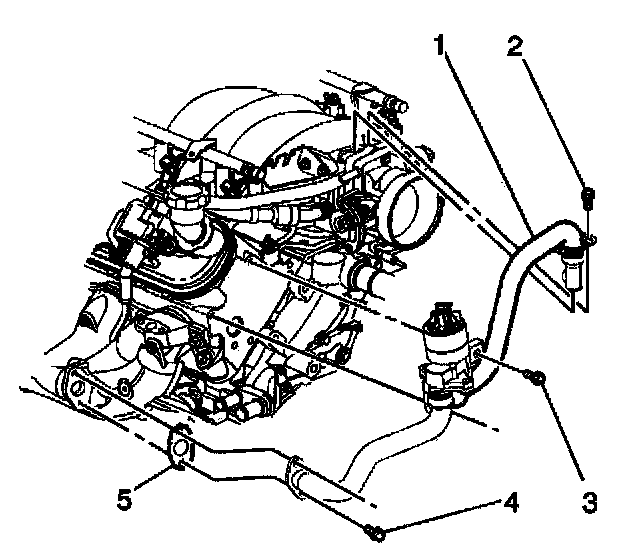 15. Remove the EGR valve pipe bolts (2, 3, and 4).