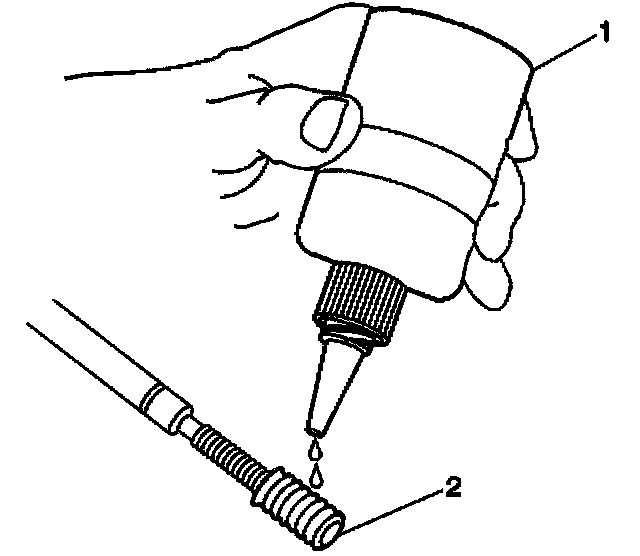 11. Apply threadlock Loctite (R) 277, J 42385-109 (1), or equivalent to the insert OD threads (2).