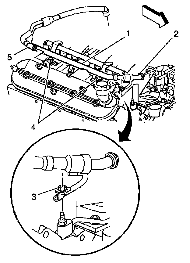 4. Release the PCV hose assembly from the mounting brackets (4).