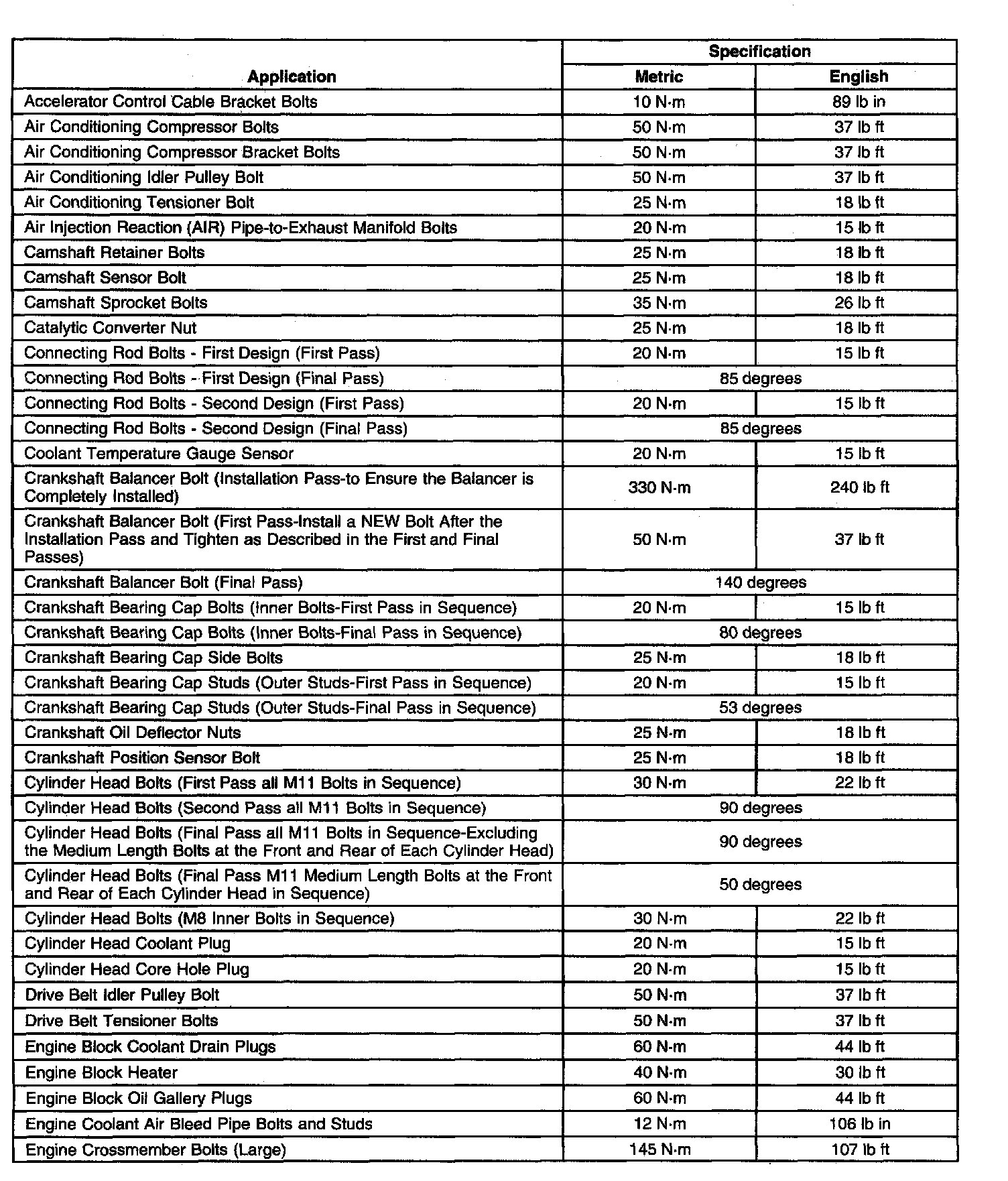 Fastener Tightening Specifications