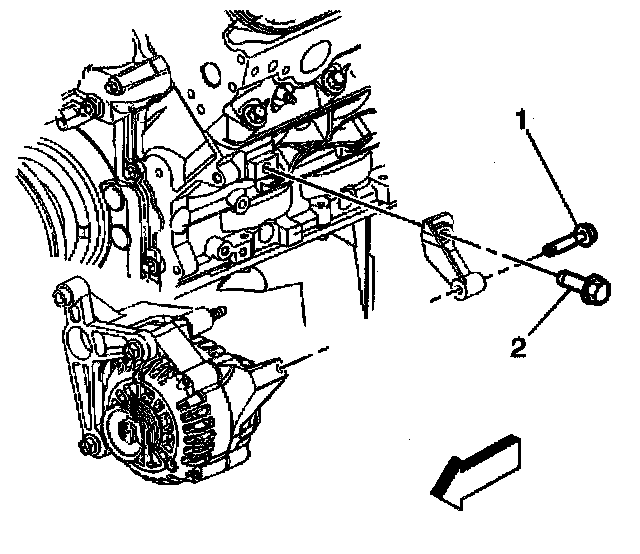 7. Remove the front generator mounting bolts and oil cooler clip.