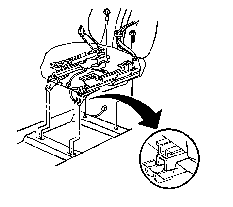 2. Position the front seat assembly forward in order to gain access to the seat adjuster attaching bolts.