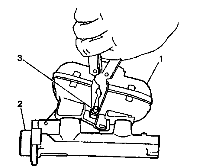 3. Remove the fluid level switch(3). Use needle nose pliers in order to compress the switch locking tabs at the inboard side of the master cylinder reservoir.