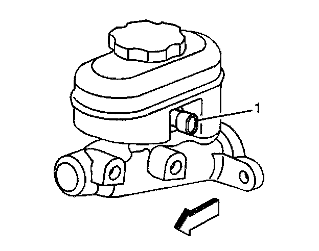 1. Install the fluid level switch (1) into the master cylinder reservoir until the locking tabs snap in place.
