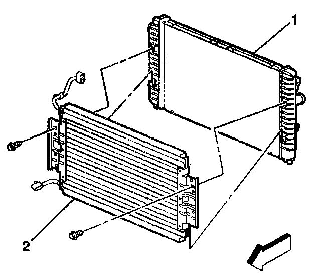 5. Remove the condenser (2) from the radiator (1).