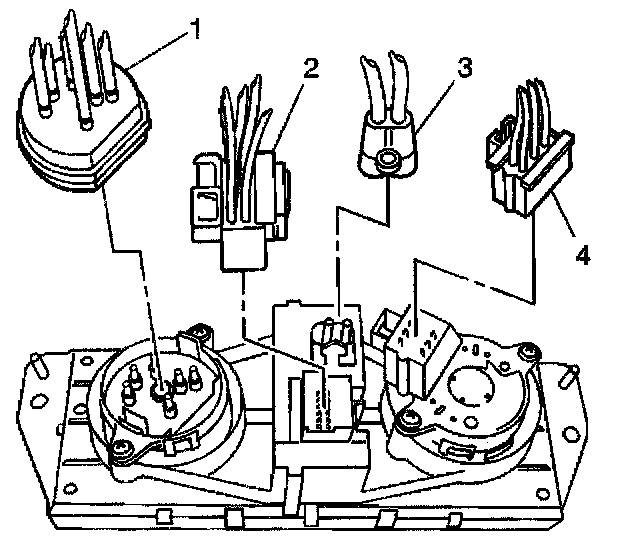 6. Disconnect the blower motor switch electrical connector (4) from the control assembly.
