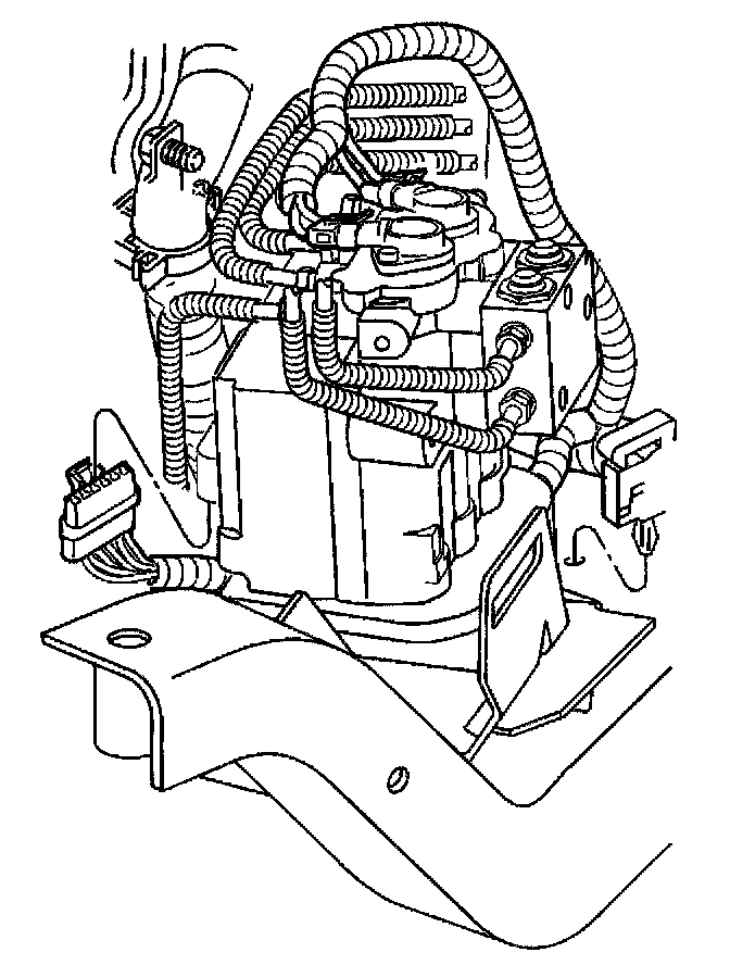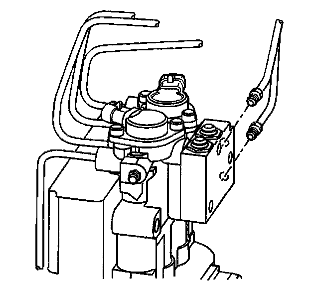 Important: Once the fluid is visibly flowing from both modulator bleeder valves, the ABS brake modulator assembly is sufficiently full of fluid. The assembly may not be completely purged of air. At this point, move to the wheel brakes and bleed the brakes. This ensures that the lowest points in the system are completely free of air.