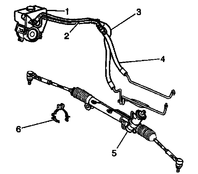 6. Remove the power steering return hose (3) from the power steering gear (5).