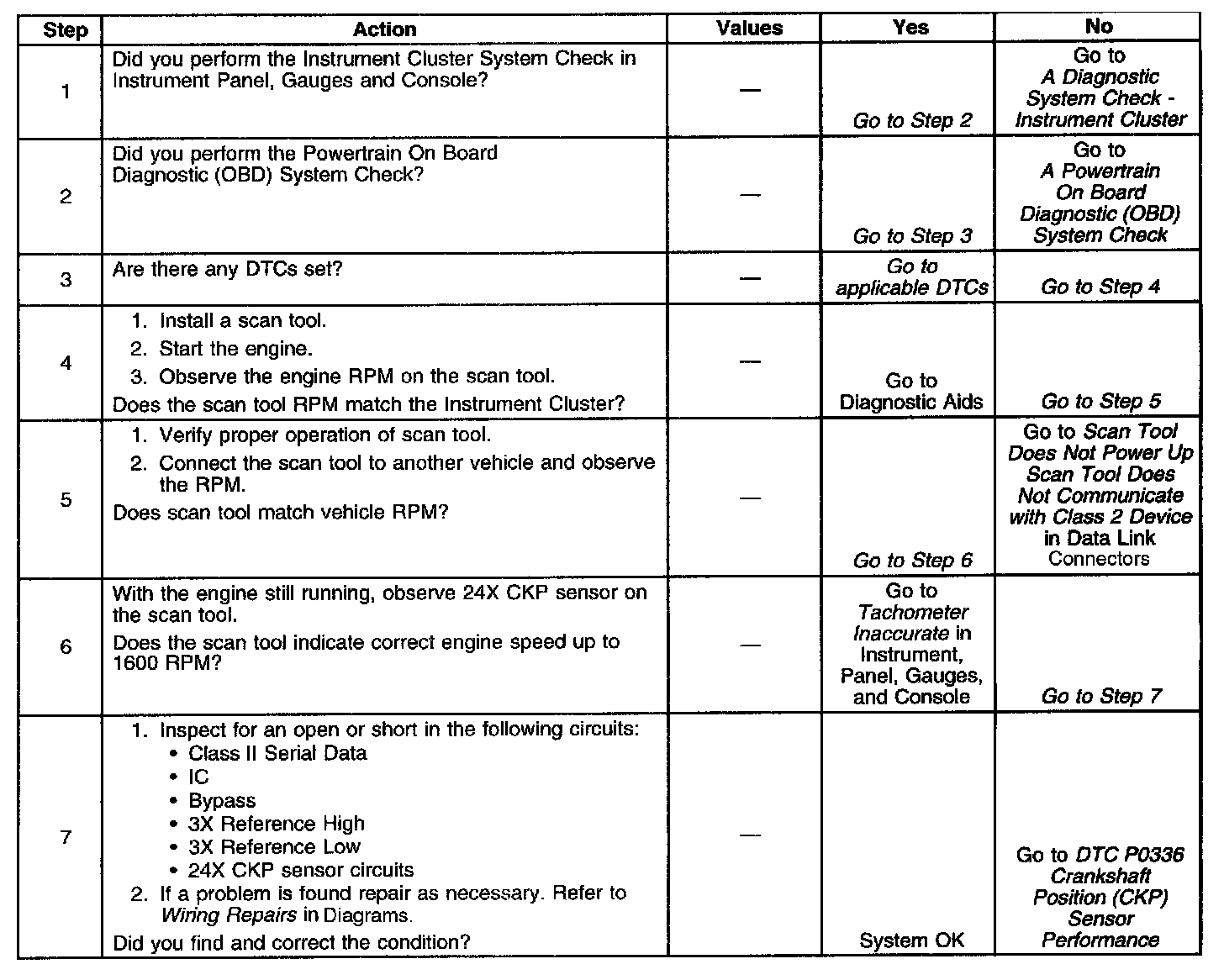 PCM Controlled Tachometer Diagnosis