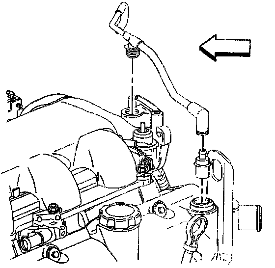 2. Disconnect the vacuum hoses from the fuel pressure regulator and positive crankcase ventilation valve.