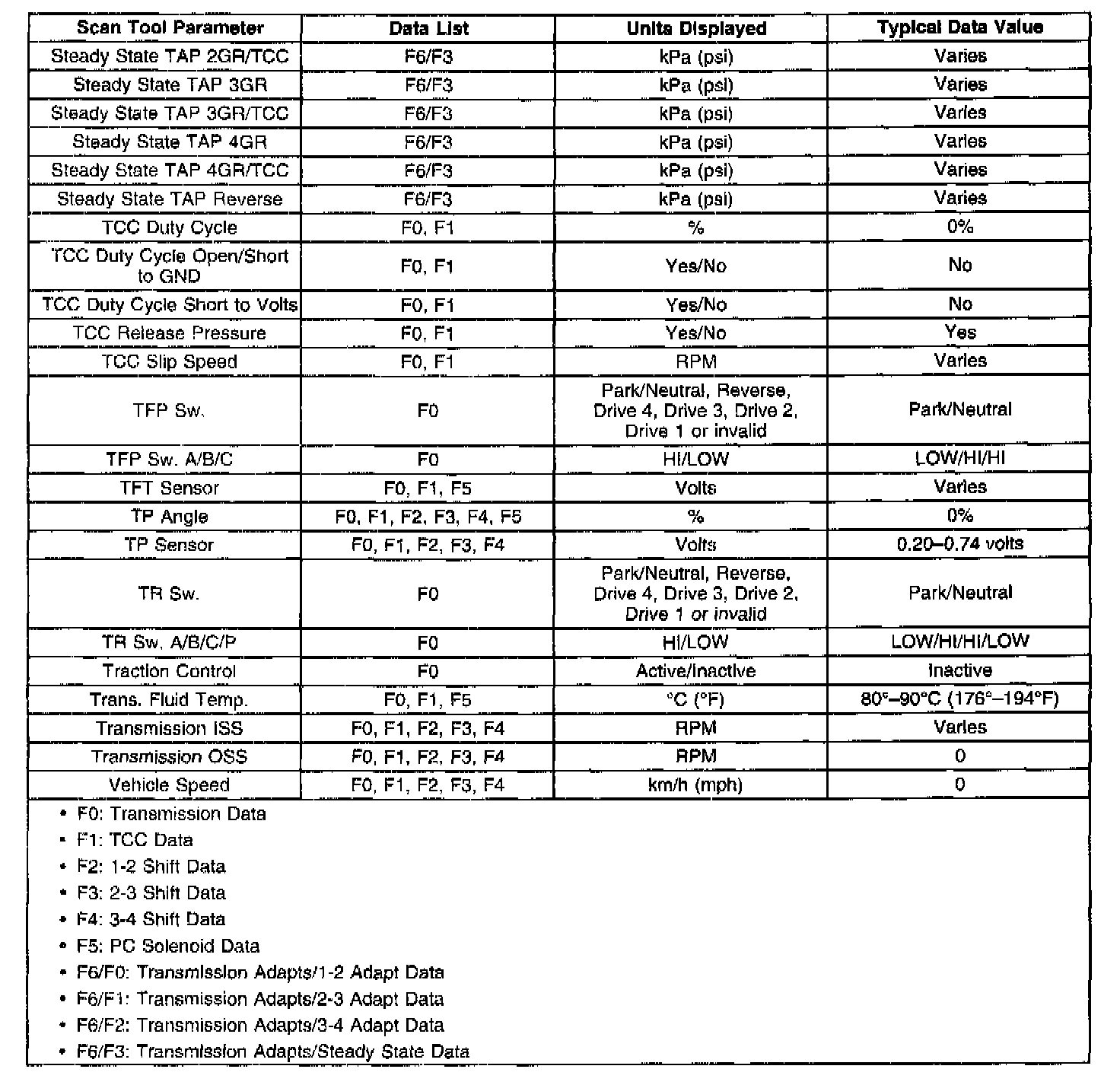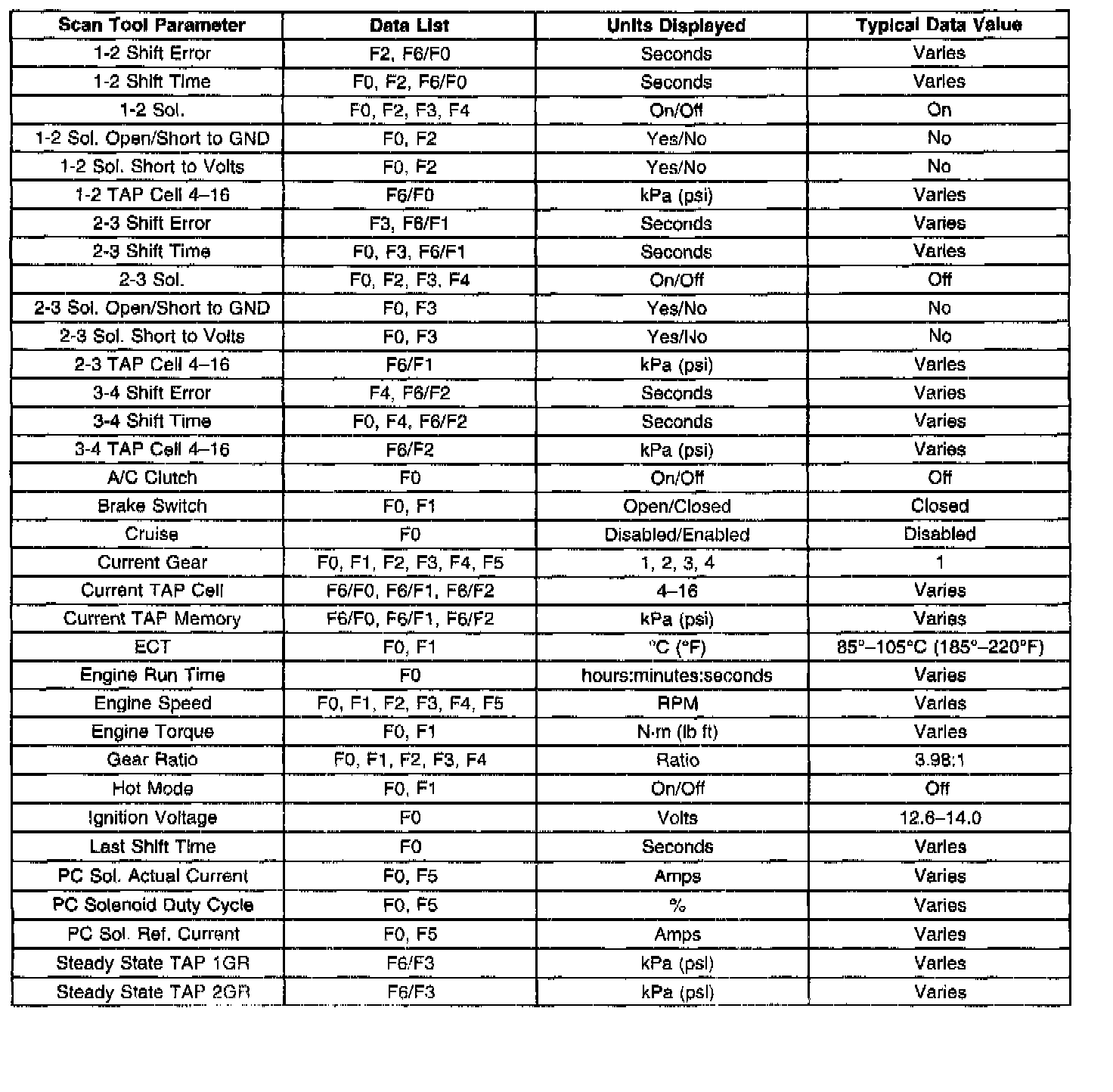 Only the parameters listed below are used for diagnosing. If a scan tool displays other parameters, the values are not recommended by General Motors for use in diagnosis.