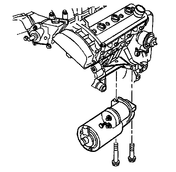 5. Remove the starter motor mounting bolts.