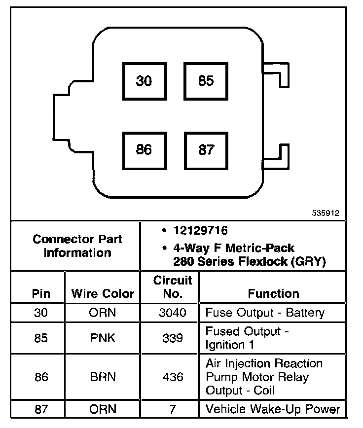 Secondary Air Injection (A.I.R.) Pump Relay: