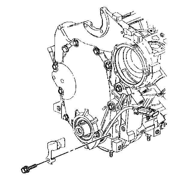11. Remove the lower crankshaft position sensor wiring harness bracket from the engine front cover.