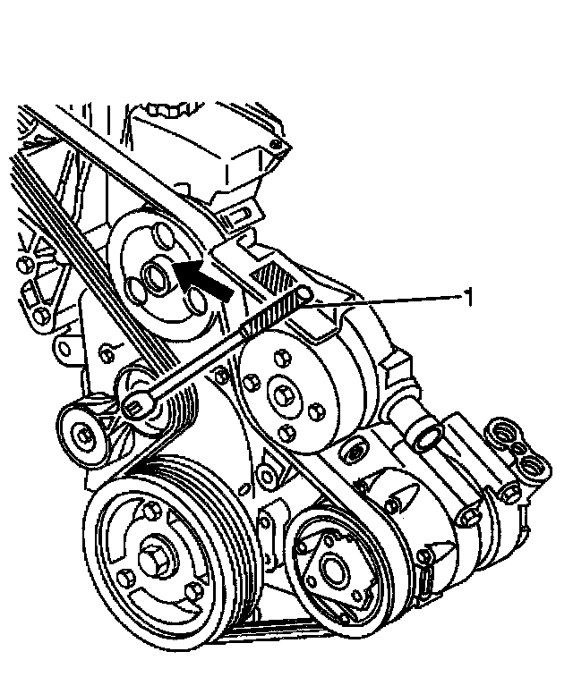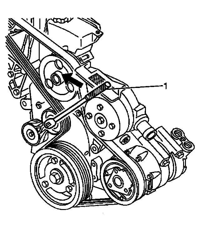 Removal Procedure1. Remove the drive belt tensioner by lifting or rotating the drive belt tensioner off of the drive belt, using a 3/8-inch breaker bar (1).