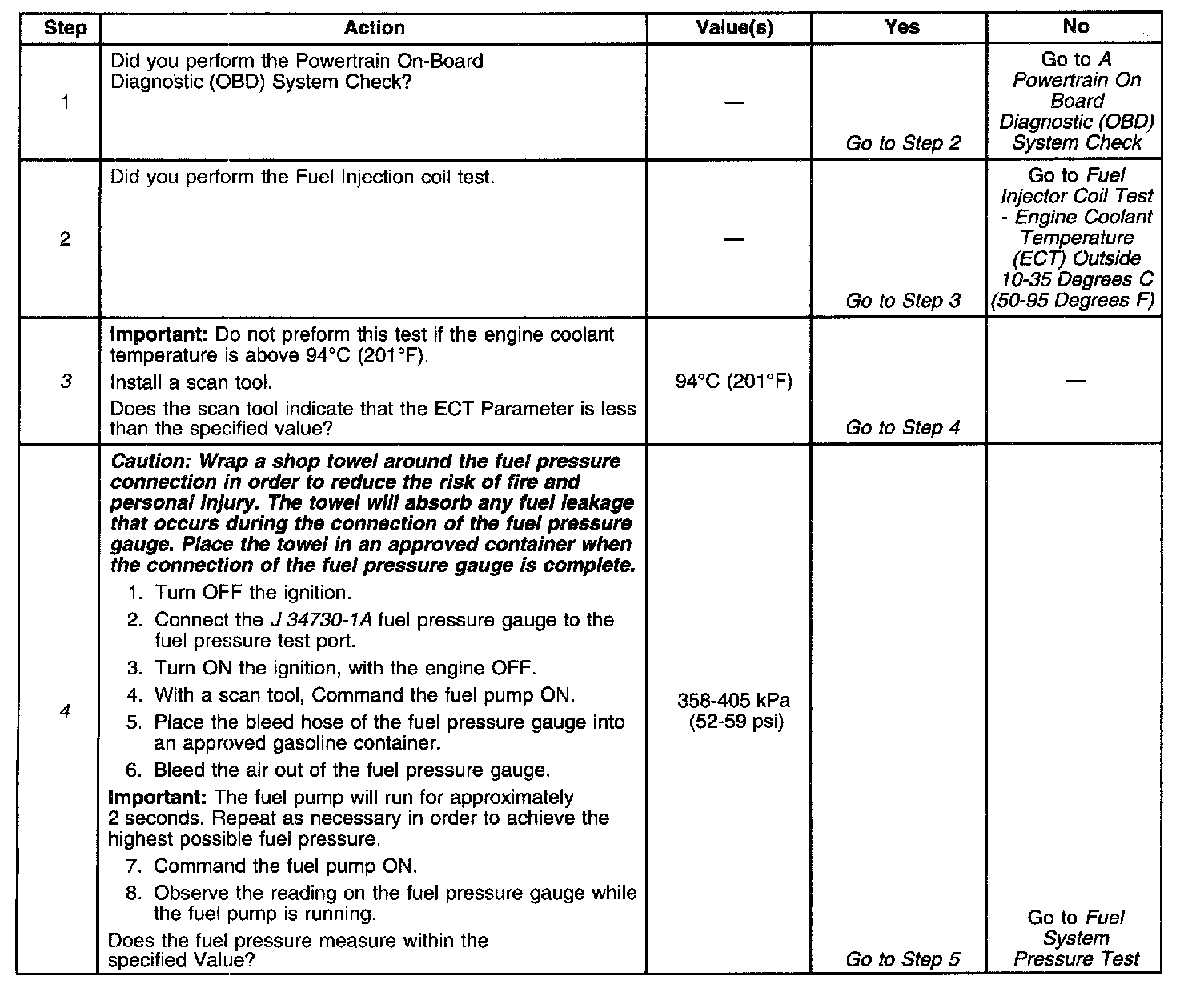 3. The engine coolant temperature must be below the operating temperature in order to avoid irregular fuel pressure readings due to Hot Soak fuel boiling.