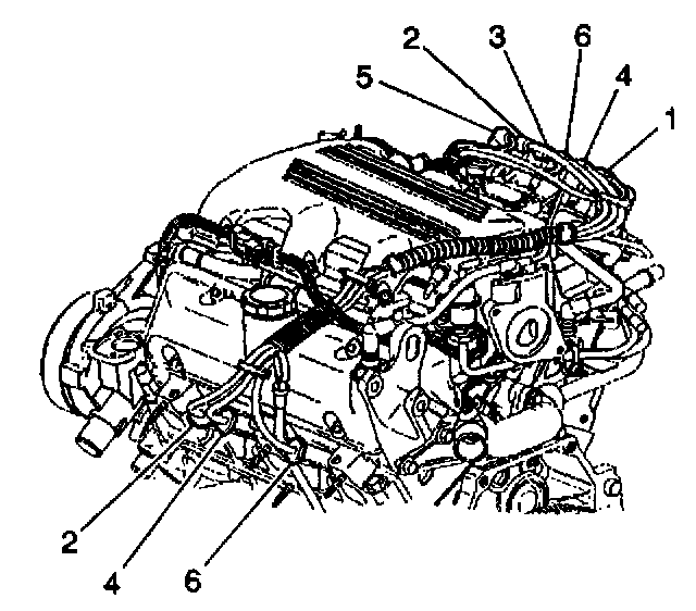 2. Note the position of the spark plug wire retaining clips. Remove the spark plug wire retaining clips from the engine.
