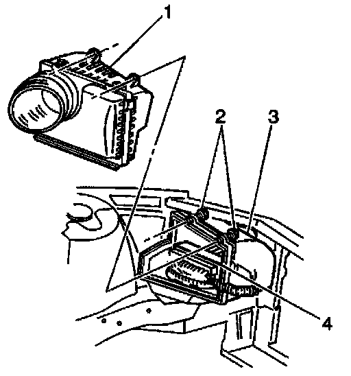 8. Without disconnecting the PCM connectors, remove the PCM (4) and harness from the PCM housing (3).