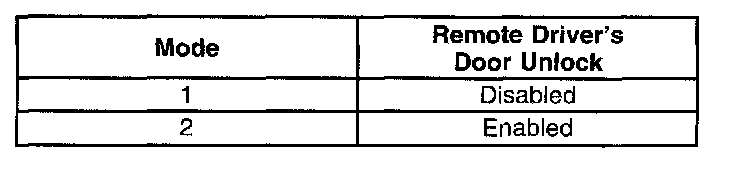 IMPORTANT: If the ignition switch is in the OFF position during this procedure, the remote unlock control customization will be terminated. The system will remain in the most recent mode.Perform the following steps: