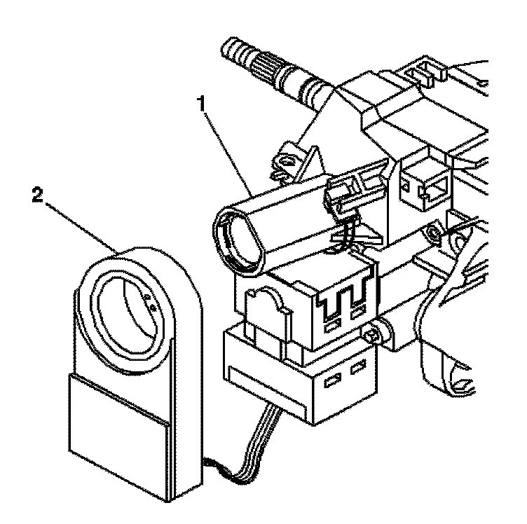 6. Pull the theft deterrent module (2) away from the lock cylinder housing (1).